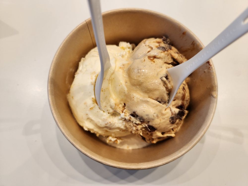 One scoop with 2 flavors (each 2 oz) of angela's ice cream. scooped on the spot from our super-fresh ice cream made daily