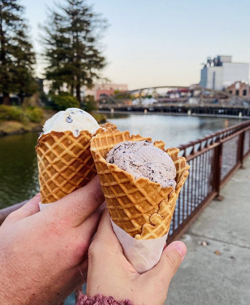 Two big scoops (8 oz) of Angela's Ice Cream. Scooped on the spot from our super-fresh ice cream made daily!